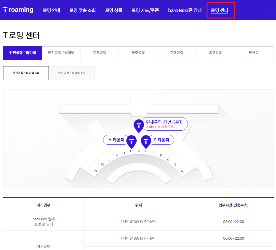 공항 T로밍 센터 찾기