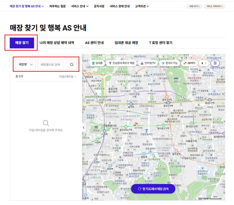 전국 SK텔레콤 대리점 찾기